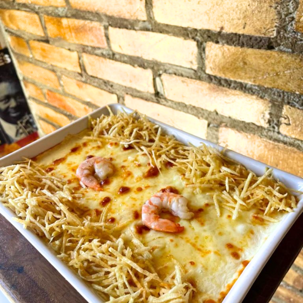 Camarão ZullaCamarão Servido Sobre Arroz Cremoso Com Ervilhas e Presunto Envolvido com Molho Branco Gratinado Com Queijo Mussarela e Finalizado com Batata Palha Caseira.R$ 90,00